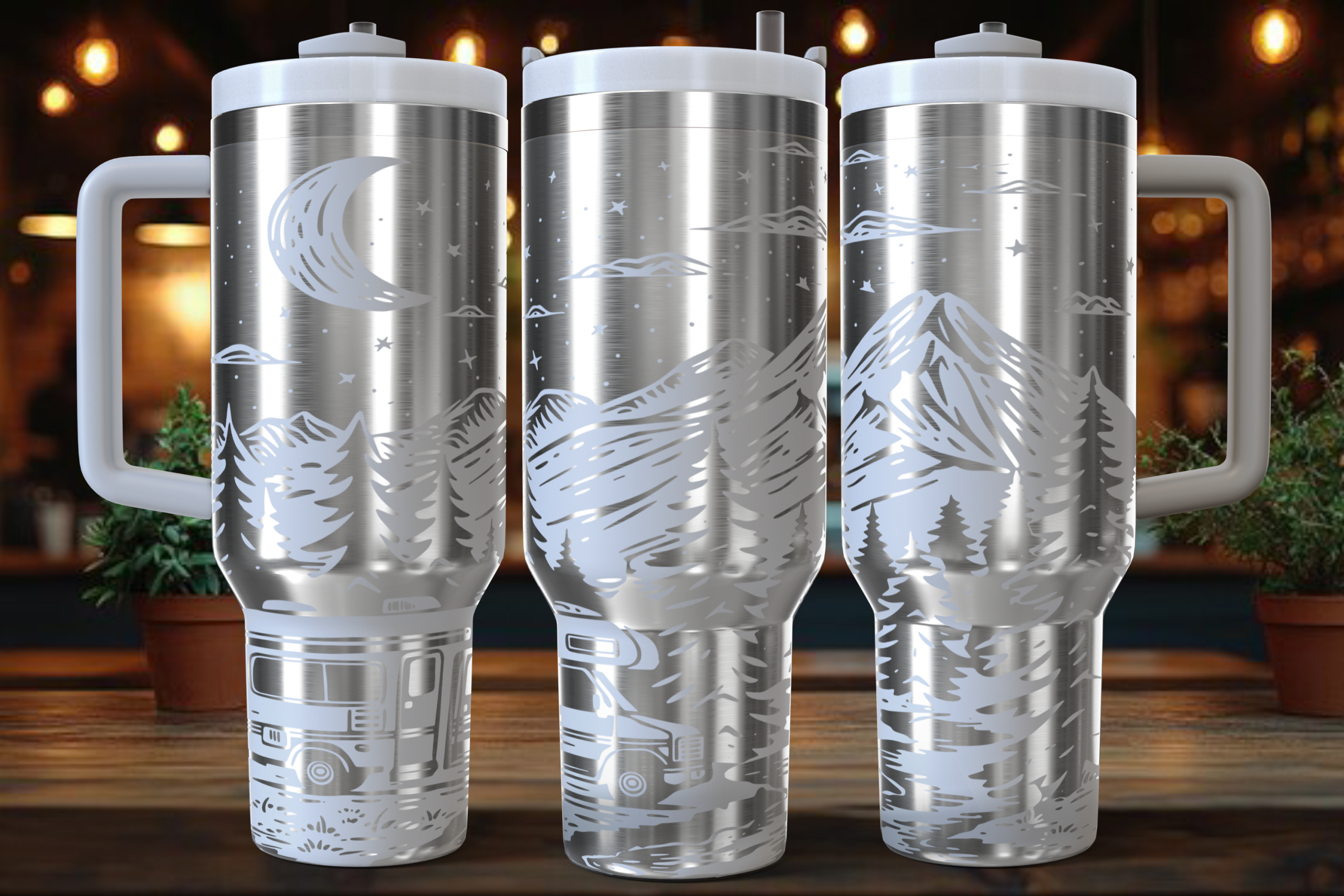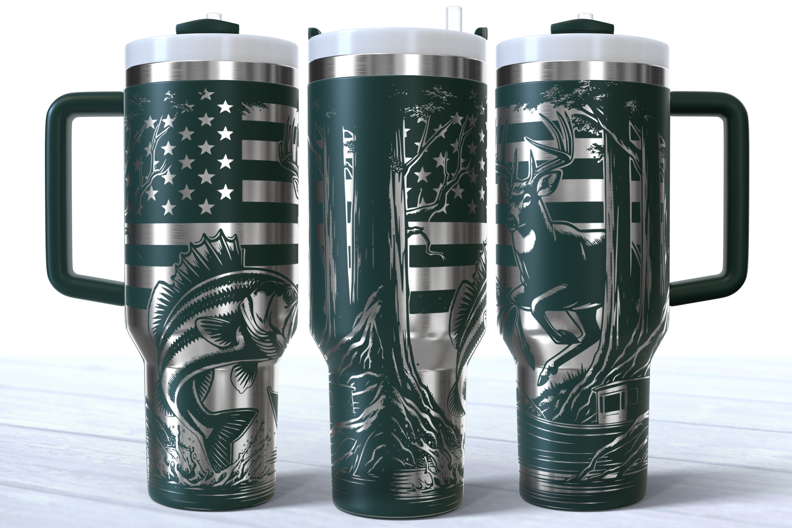 High-quality stainless steel tumblers engraved in-house with one of over 1800 wraps.